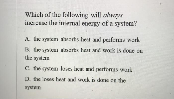 The Internal Energy Of A System Is Always Increased By