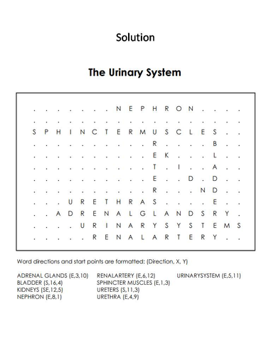 As understood feat does not recommend that you have. Urinary System Word search Biology Corner - Quizlet Review the urinary system by matching vocabulary to their definitions the words can be found on a wordsearch puzzle. Start studying Urinary System Word search Biology Corner.