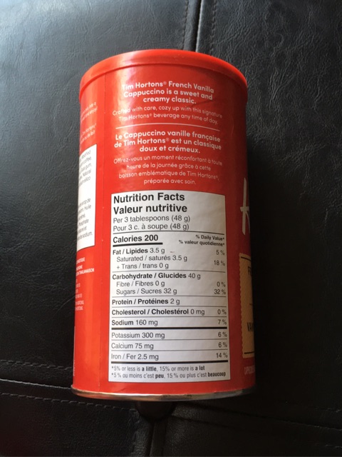 Tim hortons cappuccino calories. Get full nutrition facts for other Tim Hortons products and all your other favorite brands. Since there is ZERO grams of Fiber in this drink that means there are 344 NET Carbs in a Tim Hortons Extra Large French Vanilla. There are 140 calories in 1 large 20 floz of Tim Hortons Cappuccino large.